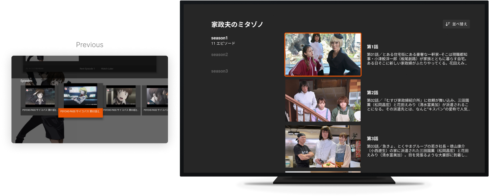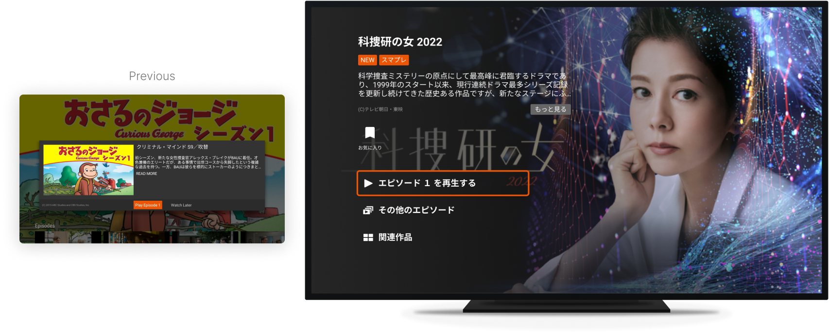 Our latest TELASA AndroidTV app revamp offers a fresh visual experience, featuring an elegant full-screen design and a simplified menu structure for increased ease of use and interaction. With this update, we aim to provide a new world of digital entertainment that perfectly balances convenience with sophisticated aesthetics.